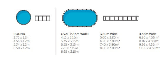 Oval | 9.15 x 3.35m | 8.95 x 3.15m | 1.2m |
